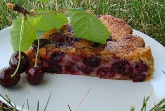 Ingrédients : 750 g de cerises (dénoyautées !), 90 g de beurre et de sucre, 75 g de farine, 60 g d’amandes, 2 œufs et une cuillère à soupe de levure chimique.