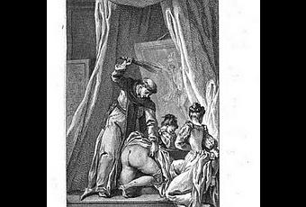 Il existe d'ailleurs un "avis au relieur" qui est parfois absent de l'ouvrage, qui précisait à l'artisan relieur où placer les figures. D'après ce que j'ai pu constaté au travers d'une bonne vingtaine d'exemplaires que j'ai pu feuilleter, les gravures "avant les numéros" sont en général plus contrastées. Il s'agit donc très vraisemblablement du premier tirage donc.Signalons toutefois que ce n'est pas si évident que cela, car il y a quelques exemples de tirage "avant les numéros" ou "avant la lettre" qui sont de second tirage : j'ai en tête le Cervantes de 1780 d'Ibarra (quoiqu'en disent certains libraires!).J'ai réussi à trouver dans ma documentation plusieurs exemplaires de ce livre en pareille condition, certains fameux!Je vous invite à les découvrir :1 - seul exemplaire cité dans le Cohen (p. 1039) en maroquin d'époque: celui de Daguin, en maroquin vert, avec les figures avant les numéros.On le retrouve à la vente Hayoit chez Sotheby's en 2001. Je me rappelle quand il est passé à l'époque: je cours chez Sotheby's le voir, et oh stupeur, je découvre qu'il est en fait en basane maroquinée verte et non en maroquin... Cruelle désillusion de bibliophile! Bon cela dit, il n'est pas vilain, mais les gravures, bien qu'étant avant les numéros n'étaient pas d'un tirage irréprochable...