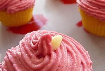 Cette fois, je vous propose un cupcakes au chocolat blanc, avec un glaçage au coulis de framboise. La recette est prévue pour 12 cupcakes.