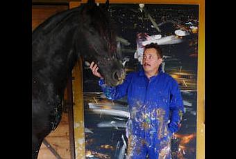 Napoléon le Cheval peintre n'est pas mauvais, en tout cas dans cette vidéo. Je suis bien persuadé qu'il y a beaucoup de loupés. Même si beaucoup penserons qu'il n'y a rien d'extraordinaire, car le cheval ne fait que donner des coups de tête pour peindre, rien que le fait que le cheval arrive à tenir le pinceau et comprenne qu'il peut dessiner sur le tableau est déjà extraordinaire.