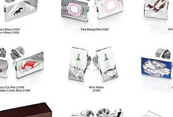 la nouvelle collection du "gentleman excentrique" est basée sur la publicité des années 1940 et est composé de 7 designs comprenant le chien Scotty, de chat, sommelier, Souliers pour ces messieurs, avion à hélice, la gastronomie, et les voitures de course de Monaco. les boutons de manchette sont d'une qualité fabuleuse, très finement gravé, puis polis et décorés à la main avec des couleur subtiles d'émaux. la fixation arrière est gravée et émaillée sur une base circulaire, de façon a avoir plus de détails visibles lorsque vous portez ces boutons de manchette.