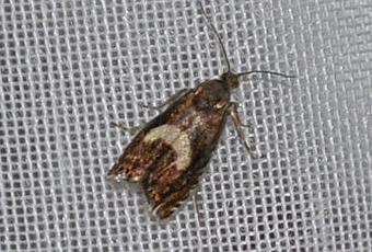 Coloration générale des ailes antérieures brun-olive, plus foncée chez la femelle, avec une tache arrondie vers l'apex formant un croissant de lune (lunule) quand les ailes sont réunies au repos.