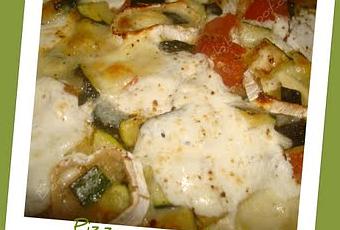Ingredientes :1 masa para pizza (receta Thermomix aqui para mi)2 calabacines1 tomate gorda1 rollo de queso de cabra1 bola de mozzarellaPimienta, sal, ajo en polvoAceite de oliva3 cucharadas soperas de queso tipo quarkCortar las calabacines en trocitos. Dorarlos ligeramente en una sarten con un poco de aceite de oliva. Pimentar, poner une poco de sal y de ajo en polvo. Mezclar. Añadir el tomate cortado en trocitos. Dorar todo 10 minutos más o menos. Las calabacines no deben estar demasiado blandas.En un bol mezclar el queso quark con un poco de sal, pimienta y ajo en polvo.Cortar el queso de cabra en rodejas.Precalentar el horno a 210 grados.Extender la masa de pizza. Cubrir con el queso quark. Adornar con las verduras, el queso cabra y la mozzarella. Pimentar.Hornear la pizza durante 30 minutos (cuidar la cocción). Servir inmediatamente.
