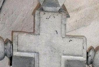 Selon L. Royer, qui nous a adressé ces photos, la croix et le polyèdre semblent être en pierre.