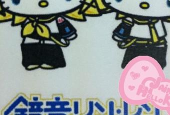 Voici une bien belle nouvelle collaboration pour Hello Kitty ( et Mimmy ) où nous la retrouvons cette fois dans la peau des jumeaux Rin et Len , Hatsune Miku et Megurine Luka , héros de Vocaloid ! Cette collaboration sera présentée le 1er juillet durant l'Anime Expo 2011 de Los Angeles salon durant lequel aura également lieu un concert en 3D de Hatsune Miku ! J'en reparlerais c'est sur !