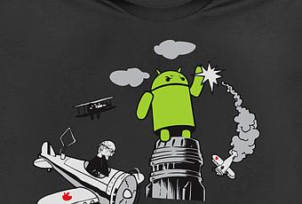 Bien connue des amoureux des t-shirts un tant soit peu geeks et originaux, la série Andy vs. Apple créée par George Soto vient d’hériter d’un tout nouveau modèle, vendu la modique somme de 18$, et enchaînant les clins d’oeil à BugDroid, à King Kong et à Steve Jobs. Pour en faire l’acquisition, suivez simplement ce lien !