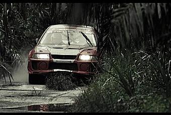 les moteurs rugissent de bonheur de savoir leurs sonorités rageuses bientôt libérées et pourtant, dans tous les esprits, à cet instant cette inconnue pernicieuse qui vous ronge les sangs, quid de l'état de la piste après ces 3 kilomètres du Pk16, dans quel état de saturation vont être les cuves d'eau prémices des bourbiers de la cocoteraie dont les cimes dépassent au loin adossées à ce ciel de plomb,et pourtant, il faut y aller et d'entrée de jeu marquer les esprits et tenter d'affoler les chronos. Kévin & David s'élancent, dans la cocoteraie, déjà, les sursauts rageurs de l'Evo V emplissent la voute humide...