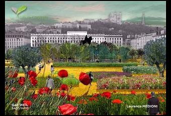 Le célèbre créateur d’art de rue a entrepris de planter des milliers d’arbres ou autres végétaux ainsi que d'installer un potager autour de la fameuse statue équestre de Louis XIV sur la plus grande place d’Europe, offrant aux Lyonnais un nouveau lieu de flânerie.