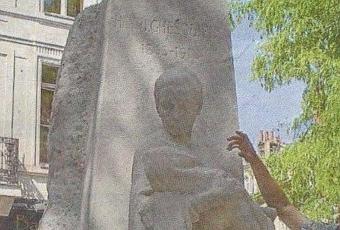 Il représente une femme tenant son enfant sous le buste en bronze d'Henri Ghesquière