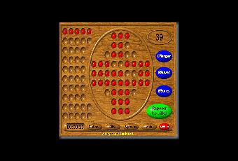 Un plateau en bois avec 33 ou 44 billes (selon le niveau sélectionné) disposées en croix.