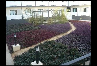 « Calme et zénitude sont les maîtres mots qu’offrent les patios dont l’originalité est un tapis végétal qui ne dépasse pas 20 cm. Un sentiment renforcé par le choix des couleurs dominantes que sont le violet et le vert » nous précise Bénédicte Corréa. Pour arrivée à faire de ces jardins une des marques de l’hôtel avec les briques rouges, Bénéticte Corréa, ingénieur agronome de formation, explique avoir « revu avec l’architecte la conception des jardins initialement prévus ».