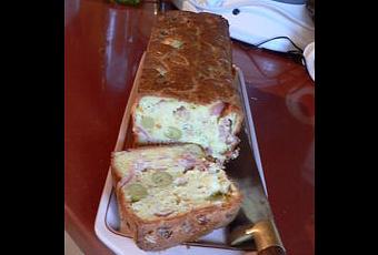Mélanger la pâte avec les olives, les morceaux de jambon blanc, 150 g d'Emmental râpé. Beurrer le moule à cake. Verser le mélange et enfourner pour 45-50 minutes.
