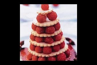 - Monter la crème en Chantilly en ajoutant le sucre glace à la fin. Étaler la crème au centre des biscuits refroidis ; garnir de framboises et monter le gâteau.