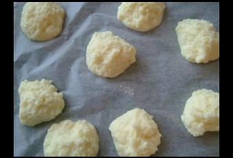 Mélanger le lait et la noix de coco de maniere à obtenir une grosse boule non liquide
