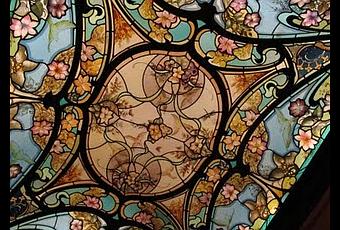 Nous voilà donc ce samedi soir au restaurant Rostang, dans le petit salon "Art nouveau", orné d'une magnifique verrière et d'émaux d'art et d'appliques.