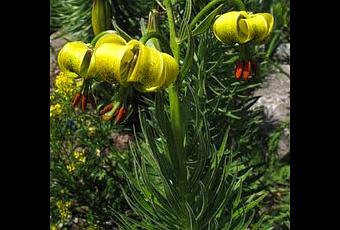 Lilium pyrenaicum, Lis des Pyrénées, se rencontre dans les bois et les prairies des Pyrénées et du sud du Massif Central.
