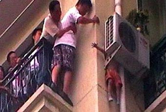 Un enfant de trois ans qui était coincé derrière l'air conditionné au septième étage d'un immeuble de Pékin a été sauvé par miracle.