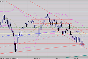Celle-ci prend appui sur l'oblique basse du canal baissier que j'ai fait figurer sur ce graphe court terme et passant par les récents plus bas (avant rebonds) depuis le retournement de tendance début mai.