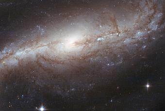 Cette image réalisée par le télescope spatial Hubble dans les rayonnements visible et proche infrarouge nous invite à redécouvrir la galaxie NGC 7479 qui imprime dans le cosmos un gigantesque et lumineux « S » inversé !