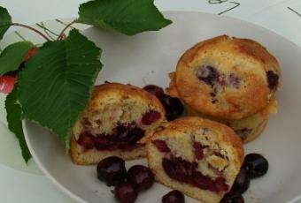 Remplir votre moule des cerises (j’ai encore pris mon moule à 6 muffins).