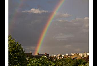 une première photo d'un arc-en-ciel qui s'est produit suite à une averse modérée sur Châteauroux.
