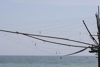 Un trabucco (Trabocchi au pluriel) est une machine de pêche ancienne, typique de la côte des Abruzzes. La construction consiste en une plateforme traditionnellement construite en pins d’Alep surplombant la mer de plusieurs mètres grâce à un réseau de pilotis. On y accède par un pont en bois et les pécheurs y actionnent plusieurs bras ou antennes longs de plusieurs mètres qui soutiennent un filet de pêche aux mailles étroites.
