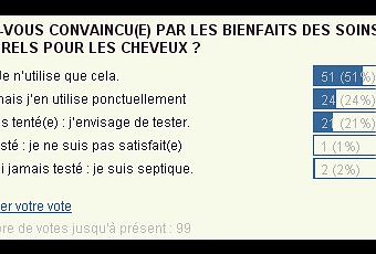 Avez-vous constaté les changements avec les produits naturels ?.... Vous pouvez oublier, négliger un peu vos cheveux, pendant des jours, des semaines, leur aspect demeure le même. Chaque soin, chaque bénéficie est profond, vraiment acquis. La fibre capillaire se modifie, se renforce, s’épaissit. Certes, peut-être que les premiers temps, les résultats ne paraissent pas aussi spectaculaires qu’à la télévision : il faut du temps pour nourrir vos cheveux, réactiver leur croissance, lisser les écailles… Mais ce temps est tel un capital possédé définitivement, tant que vous veillez à maintenir régulièrement vos soins (comme pour la peau, qui s’entretient, ou le corps qu’il faut nourrir de manière équilibrée !).
