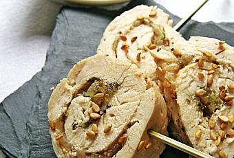 * Les roulades. Ouvrez les blancs au 3/4 sur toute la longueur. Aplatissez-les bien à l'aide d'un rouleau à pâtisserie. Salez poivrez. Déposez l'escalope sur du papier cuisson.