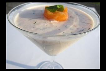 Mixer ensemble les petits suisses avec les tranches de saumon fumé, ajouter l’ail et l’aneth.