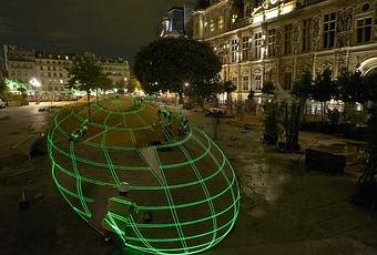 Mardi minuit, place de l’Hôtel-de-Ville à Paris. Tandis que la Fête de la musique bat son plein, une étrange mappemonde sanglée de rayons laser semble sortir de terre. Depuis cinq jours,