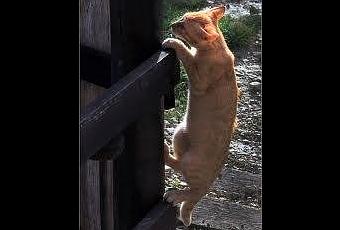 Ginny et moi nous vérifions la clôture. Aucun trou n’est assez large pour qu’il puisse s’y faufiler. Comment fait-il ? Où est-il allé ? Nous avons la réponse deux nuits plus tard. Une fois encore la cour est vide. Bob était encore parti. Je l’appelle puis j’entends un crissement. Soudain, je le vois qui grimpe sur le haut de la clôture et se laisse tomber dans la cour. J’étais stupéfait.