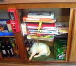Je vous présente Cacahuète, petite chienne Jack, appartenant à Mme et Mr Claveau. J'ai trouvé très original sa petite niche aménagée dans un placart derrière le comptoir du bar. Apparemment elle ne boit pas de bières bien que la photo pourrait le laisser supposer. En tous cas elle est bien tranquille et très mignonne.