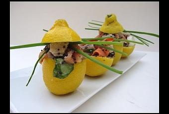 Mélanger le tout, ajouter le jus de citron, les oeufs de lump, la ciboulette et le basilic ciselés.