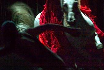 Par Julie Cadilhac-Bscnews.fr/ Crédit-photo: Nabil Boutros/ Dire que l'ouverture du Centaure et l'Animal ne laissait rien présager de bon est un euphémisme: on découvre un homme au masque inquiétant, tête couverte d'un tissu blanc, qui martyrise les touches d'un piano de ses orteils et de ses doigts tandis que des vers macabres de Lautréamont résonnent sur le rideau tremblant. On tremble déjà d'assister à un spectacle qui sacrifie l'émotion en se noyant dans un projet trop conceptuel et sentant la lenteur pénétrer dans tous les membres du plateau, l'inquiétude de passer une ennuyeuse soirée pointe dangereusement le bout de son nez. Mais, alors, entre un cheval et la beauté sauvage de l'animal gomme tous les manques du début. La danse butô et le cérémonial équestre entament un dialogue troublant et primitif. Homme et cheval sont objet de métamorphoses aussi monstrueuses que fragiles, aussi puissantes que vacillantes. Les ombres se détachent, les corps s'affrontent, se débattent, sont soumis à de violents sursauts. Déguisés de lumière, l'homme et la bête se confondent: le cavalier Bartabas et ses quatre superbes chevaux ( Horizonte, Soutine, Pollock et Le Tintoret) qui dansent sur le plateau s'improvisent spectres inquiétants, papillons gigantesques, cauchemars voilés, centaure bavard. Sujets d'angoisse autant que de fascination. De miroir en jeux de lumière miroitant sur des rideaux d'argent, d'or ou de pierre de lune, on semble revenir au premier temps du monde. Monstre mythologique ou animal nu dans la lumière de la genèse, l'animal s'humanise lorsque l'homme a gagné la mort en un baiser. Sous une pluie de sable d'or cendre, Ko Murobushi ploie sous son humanité dont il souhaiterait s'extraire et son corps tout entier sait s'agiter de soubresauts qui ragent de ne pas quitter leur forme d'origine.