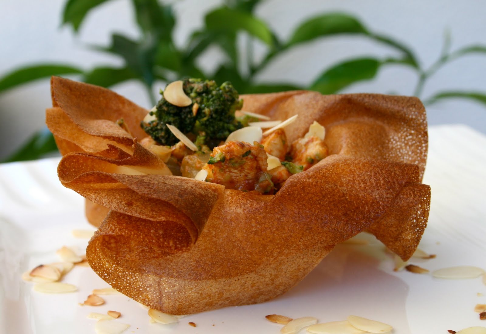 - disposez dans chaque ramequin 2 feuilles de brick superposées et ouvrez bien la corolle