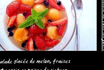 La chaleur d'hier m'a incité à trouver une recette fraîche et désaltérante : salade glacée de melon, fraises