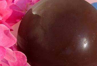 Je les ai moulés dans des moules demi-sphère en silicone (j’en ai obtenu 5). Je vous conseille de les faire la veille, sinon, comptez au moins 6 heures de congélation.