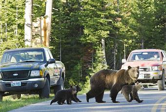 Même pas peur. Ici, les grizzlys sont l’attraction touristique. Cette femelle plantigrades et ses petits se sont, comme à l’accoutumée, aventurés, mercredi dernier, dans les rues du parc national de Grand Teton, situé au nord-ouest de l'État du Wyoming aux Etats-Unis. Ce parc, fait partie du Greater Ecosystem, immense territoire où les bisons, les grizzlys et de nombreuses autres espèces sauvages peuvent jouir de l’un des derniers grands espaces intacts d’Amérique du Nord. " title="Parfois, l'actu est bien pesante à regarder ..." />Même pas peur. Ici, les grizzlys sont l’attraction touristique. Cette femelle plantigrades et ses petits se sont, comme à l’accoutumée, aventurés, mercredi dernier, dans les rues du parc national de Grand Teton, situé au nord-ouest de l'État du Wyoming aux Etats-Unis. Ce parc, fait partie du Greater Ecosystem, immense territoire où les bisons, les grizzlys et de nombreuses autres espèces sauvages peuvent jouir de l’un des derniers grands espaces intacts d’Amérique du Nord. " border="0" />