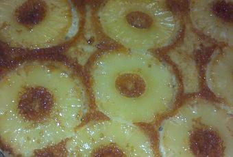 Verser le caramel chaud dans un moule, disposer les tranche d'ananas et verser la pâte dessus, enfourner dans un four préchauffer à 180°C pendant environ 30 minutes.