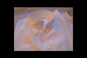 Une chemise en coton blanc de belle qualité et un col officier c'est à dire plus haut que le col Mao cher aux vieux éléphants socialistes (Atali, Lang, Mitterand), mais moins haut que la "pèle à tarte" engonçant le cou comme celui porté par Karl Lagerfeld.