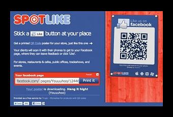 Si vous avez un événement, que vous êtes un restaurant, un café… que vous voulez augmenter les fans de votre page Facebook, plus de « like », des commentaires sur votre page… Spotlike peut vous être utile. Le site vous propose de générer un poster avec un QR code à placarder où bon vous semble. Dommage qu’on ne puisse pas personnaliser un peu les infos associées au QR code.
