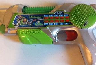 En effet, ils ont réussi à caser pas moins de 10 sonnettes stridentes dans 1 seul pistolet. (on les voit bien, heureusement, c'est sur les 10 petits boutons rouges là regardez la photo). Non mais c'est très fort, quand on y réfléchit. Ils auraient pu se contenter d'en mettre 1 seule de sonnette, mais non, il se sont dépassés, il ont voulu nous montrer tout ce dont ils étaient capables. Yes we can ils ont dit à leur chef. On fera notre possible, afin d'offrir le meilleur pistolet du monde aux mini-fans de Buzz l'Eclair. Et qui dit meilleur, dit au moins 10 sonnettes stridentes différentes. Sans vouloir trop m'avancer, c'est si parfait, que je pense que leur bonus annuel devait y être indéxé."Tant de coeur au travail, tant de zèle, ça fait plaisir, a pensé leur chef. 10 sonnettes, ils l'ont fait ! C'est magnifique j'en pleure de joie ! Le brevet est déposé, et on peut passer en production les gars ! Youhouuuuuu !"