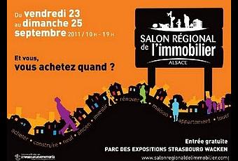 Salon Régional de l’Immobilier, du vendredi 23 au dimanche 25 septembre 2011 - Parc des expositions de Strasbourg, de 10h à 19h.Source : Communiqué Salon Régional Immobilier Alsace EN SAVOIR PLUS :http://www.salonregionaldelimmobilier.com/ En visite sur l'édition 2010 du Salon Régional de l'Immobilier Alsace : source Alsace 20