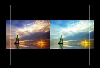 Pour mon exemple, je veux colorer le ciel dans mon enregistrement sans toucher au reste. Je choisis donc le masque (canal alpha) avec une face supérieure blanche et une face inférieure noire. Le masque sera ensuite transparent et ce qui est noir restera tel quel. Cliquez sur « Ouvrir », le masque est alors placé au-dessus de l’image. D’abord, il ne se passe rien. C’est pourquoi nous passons à l’étape suivante, l’option « Correction des couleurs », où nous allons déplacer le point de la roue chromatique du centre vers le haut. Vous pouvez voir que la couleur change dans la fenêtre d’aperçu de l’enregistrement. Pour notre exemple, il s’agit du ciel. Mais on peut également voir un bateau et l’horizon dans notre enregistrement. Vous pouvez déplacer légèrement ces éléments. Dans un précédent article, j’ai déjà décrit l’application de keyframes. Vous pouvez également les utiliser ici.