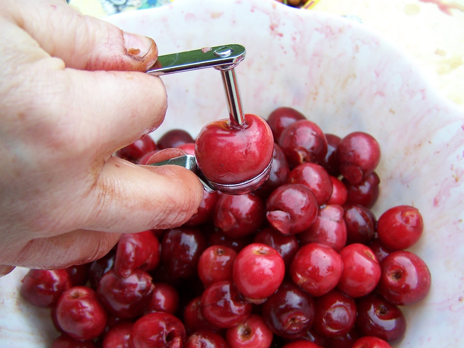 1) Le dénoyauteur manuel, à l'ancienne. C'est un peu long, vous devez procéder cerise par cerise... Mais, cela marche très bien et vous voyez bien le noyau tomber.