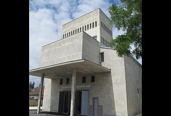 Dans l'escalier, une pièce originale de Felice Varini : trois carrés au couleurs primaires, mais leurs intersections sont en blanc, extrapolation des lois de l'optique.