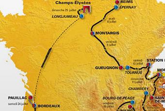 Le Tour est également un bon moyen pour découvrir les régions françaises. Chaque jour, le Guide Touristique vous fera découvrir les sites les plus somptueux et les points d'orgue de l'architecture ou de la culture. Par Francois Thomazeau et Catherine Soix. cliquez sur la carte.
