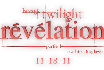 (lien) de la saga Twilight se mette aux couleurs de la première partie du quatrième opus de la saga, réalisé par Bill Condon, Breaking Dawn, je vous propose de voir le site du film québécois ! Et oui, Seville (distribution québécoise) a mis en ligne le site aux facettes de 'la saga twilight Révélation' ! Et en même temps que vous découvrez le site, voici ci-dessus, leur logo du film : 'La saga twilight Révélation partie 1, vf de Breaking Dawn' !