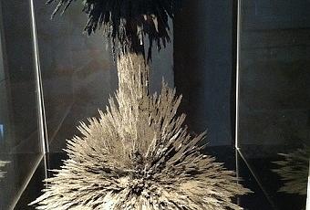d’une pièce qui s’annonce colossale est présentée ici, colonne blanche avec en son milieu une chambre vitrée où la limaille de fer crée des formes hérissées, des germinations magiques (