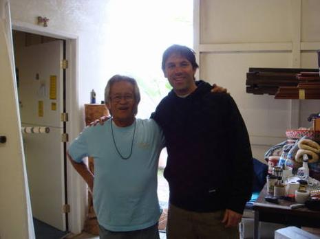 Arrivé en Californie , premiére grande rencontre , Donald Takayama , tout de suite dispo , je découvre quelqu'un d'incroyablement ouvert , je le dérange en plein shape , mais bon retraité , il a tout son temps et a décidé de le passer avec mooi .